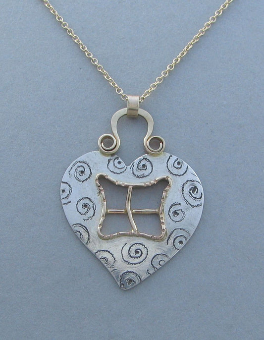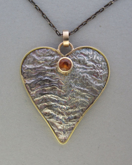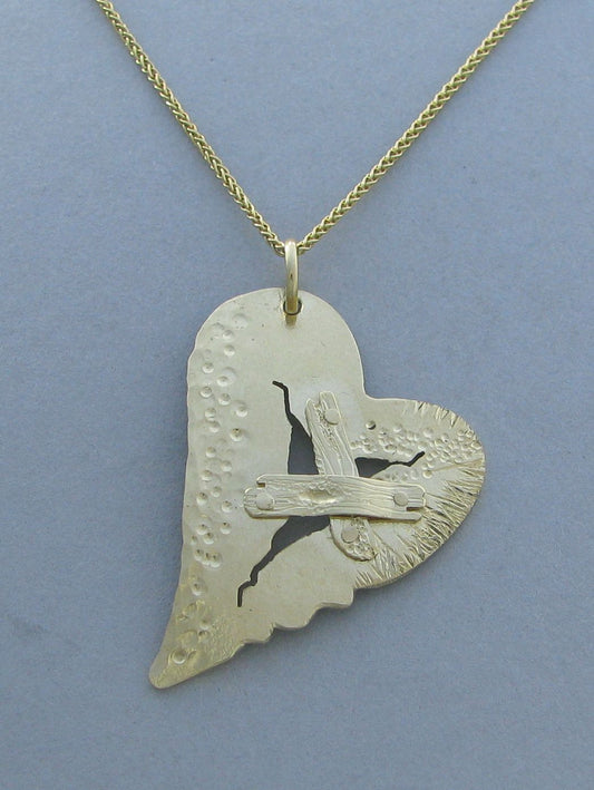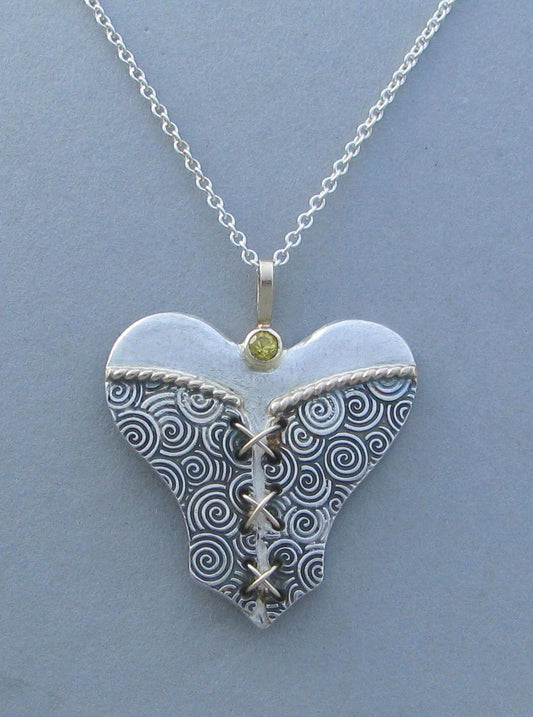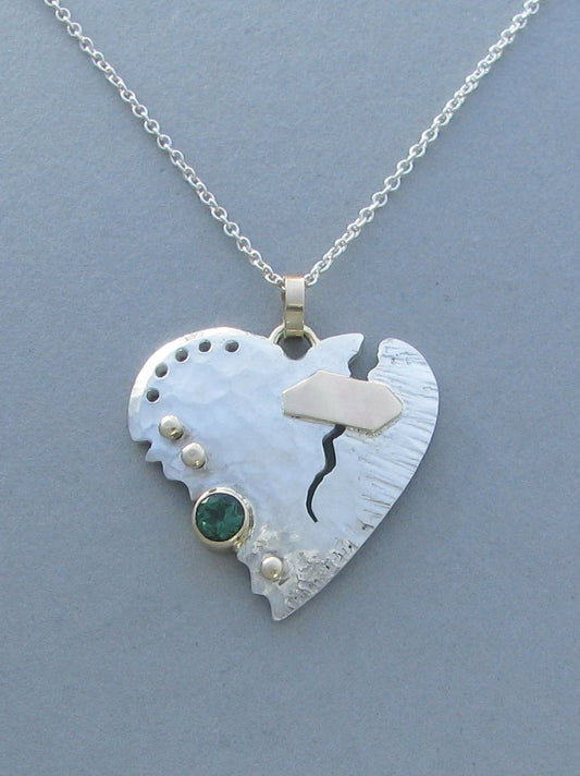 Sterling Patched Broken Heart Pendant with Tourmaline